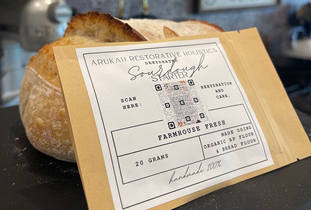 Introducing our 2oz Sourdough Starter, the perfect way to kickstart your homemade sourdough journey. Included with your purchase are detailed instructions on how to get started - simply scan the QR Code and you’ll be on your way to sourdough success. Our Sourdough Starter not only includes rehydration instructions but also provides guidance on how to maintain and feed your starter for optimal results. Get started with ease and peace of mind knowing you’re in good hands with our step by step instructions, making it effortless to begin baking delicious sourdough bread from the comfort of your own kitchen. 3 Guides in ONE: -Rehydration -Care and Maintenance -Feeding Instructions To get started simply: -purchase your starter from us -gather your bakeware and utensils -follow the instructions in the guide -then start baking and use our care/maintenance/feeding guide to continue We are here every step of the way. Message us if you have questions and please tag us on your social media as you create - Arukah Restorative Holistics