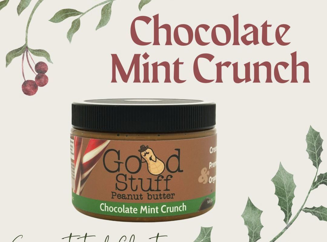 The newest creation from Good Stuff Peanut Butter is a fun holiday treat! Made of peppermint, chocolate, and peanut butter - this combo is SO yummy. You will have to try it yourself! Locally made in Asheboro by the Presnell family. They freshly grind high oleic peanuts and slow roast them in small batches. In a nutshell, high oleic peanuts are much healthier than typical peanuts. Sweetened with Organic Maple Syrup and no "bad" sweeteners. The Presnell's named their peanut butter perfectly - it really is the Good Stuff! 12oz. jar of Chocolate Mint Crunch Peanut Butter as pictured.
