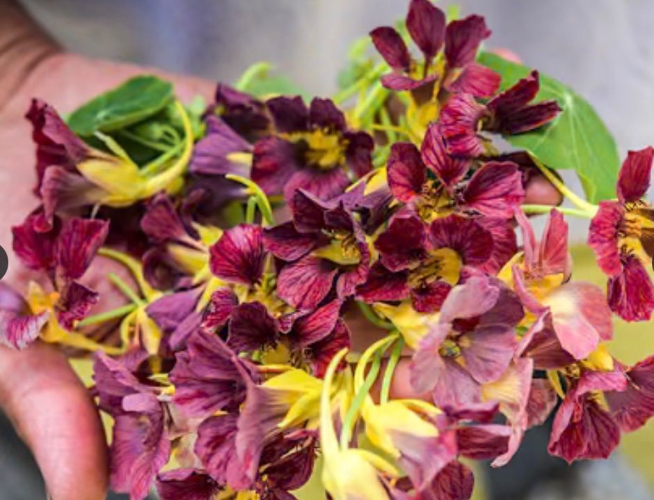 Description: Purple Emperor features unique purple and burgundy hues. Both leaves and flowers are edible, offering a peppery flavor.