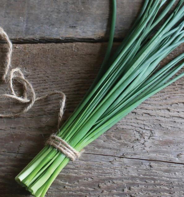 Description: Typically grown in bunches or clusters, chives offer a mild onion flavor used as a fresh garnish. Eventually they will produce a puffy purple flower on top that bees and other insects love!