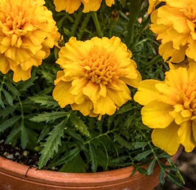 Description: Marigolds are dwarf, tidy plants, this variety with a beautiful golden hue. A great choice for edible flowers that do well in containers or open space.