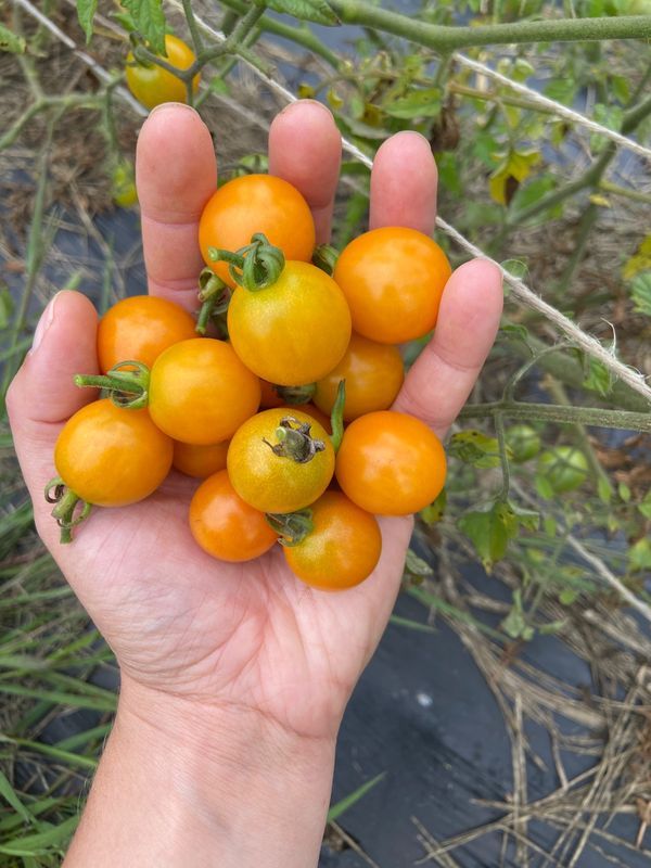 Description: A fan favorite! Golden cherry tomatoes that yield early and go through the season. They have a tendency to crack if left on the vine too long; make sure to continuously harvest once changed to deep yellow/orange. Indeterminate (will keep vining and setting fruit all season).