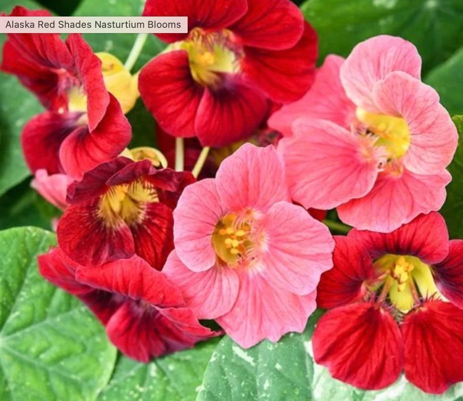Description: This variety of nasturtium offers red hues ranging from salmon to crimson. Both leaves and flowers are edible, offering a peppery flavor.
