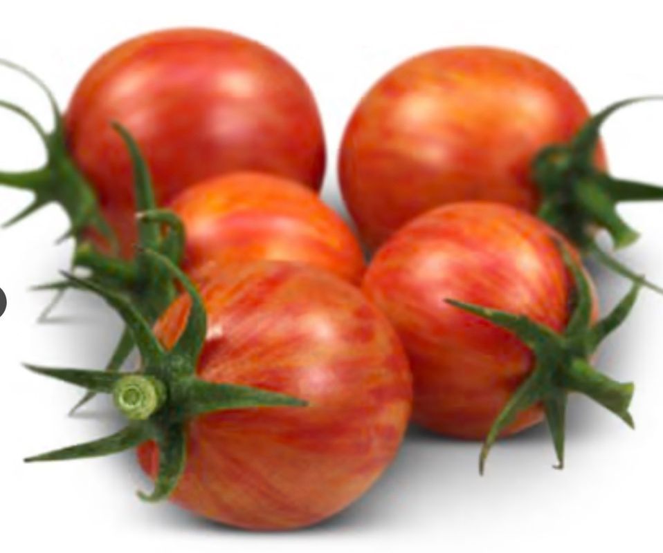 Description: Pink cherry tomato with yellow stripes that pairs well with Sungold (yellow cherry). More resistant to cracking. Indeterminate (will keep vining and setting fruit all season).
