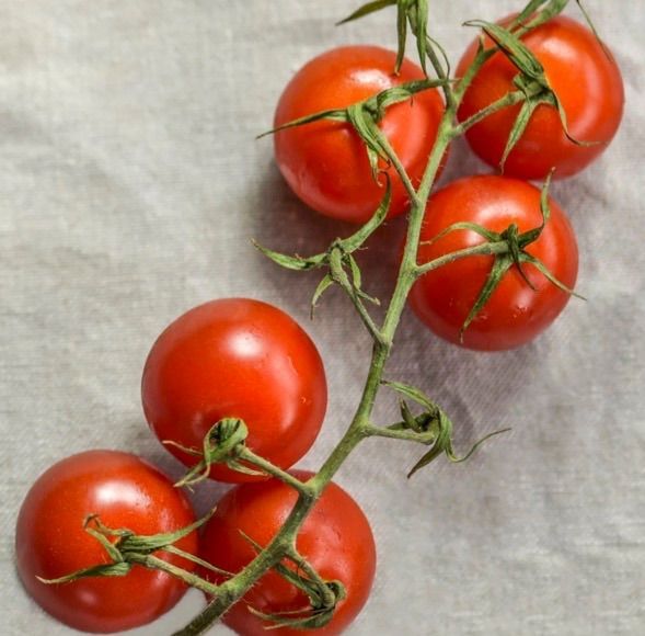 Description: Red cherry tomato with fruit slightly larger than other varieties. Indeterminate (will keep vining and setting fruit all season).