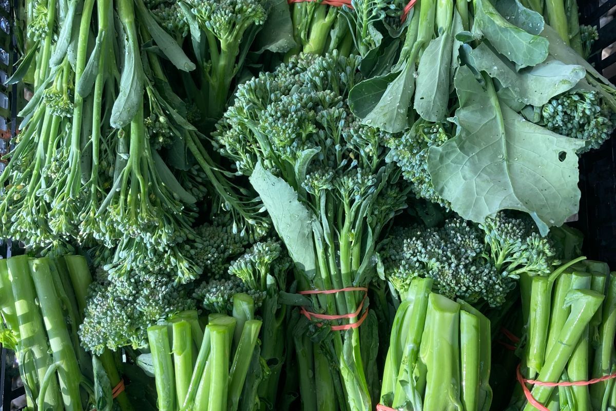 Broccolini / sprouting broccoli. Tender, delicious stems are the tastiest part.