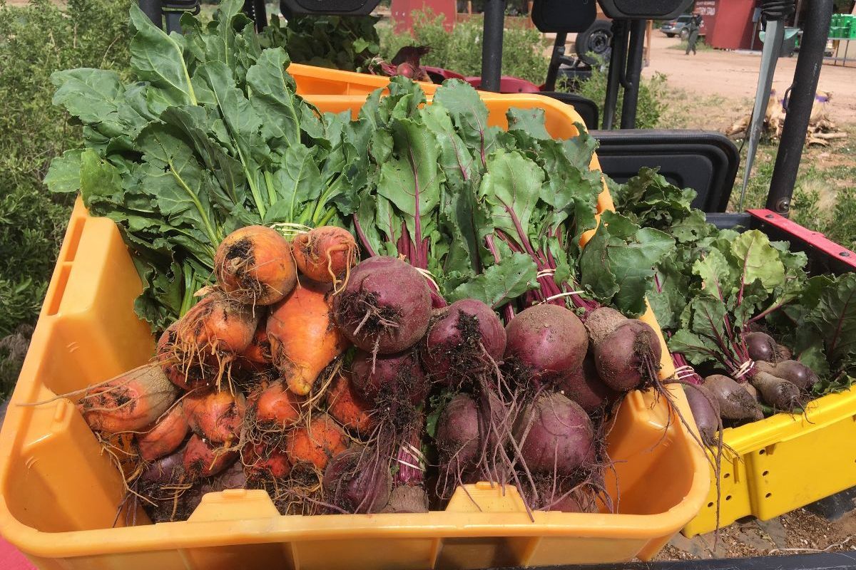 Beets, typically bunched. Farmer's mix of red, gold and candy-striped.