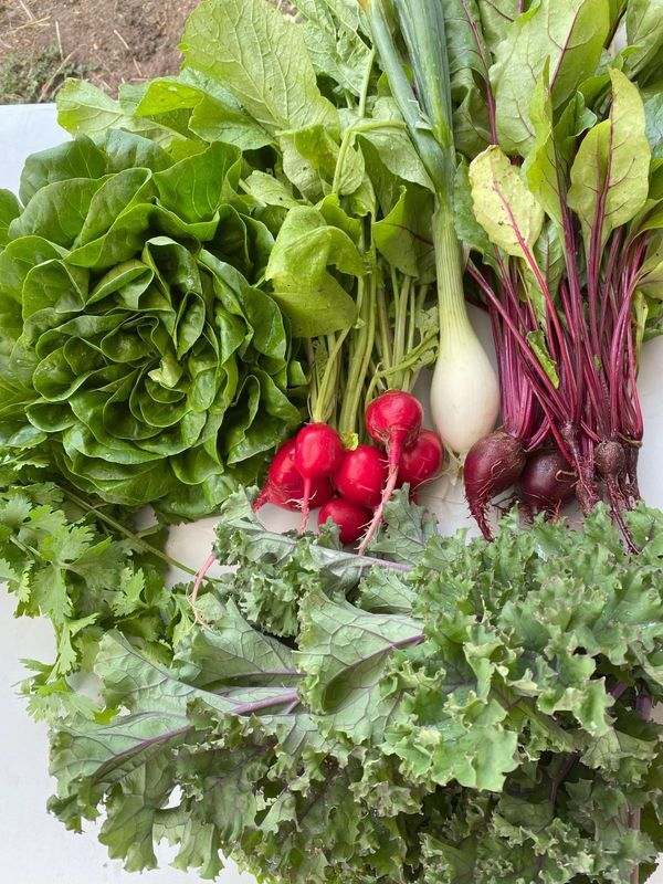 This subscription is distributed once a week for 15 weeks. You will receive a minimum of 5 produce items each week. Each weeks subscription will be based on what is in season with the first 6-8 weeks heavy on greens, lettuce, radishes and spring crops. During the height of the summer you'll see tomatoes, cucumbers, peppers and more of your summer favorites.
