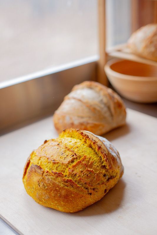 Buy 2 and save $2. The double feature always includes a plain loaf for 10$ and a rotating specialty loaf at 10$ (normally 12$). This week's specialty is 50% whole wheat.