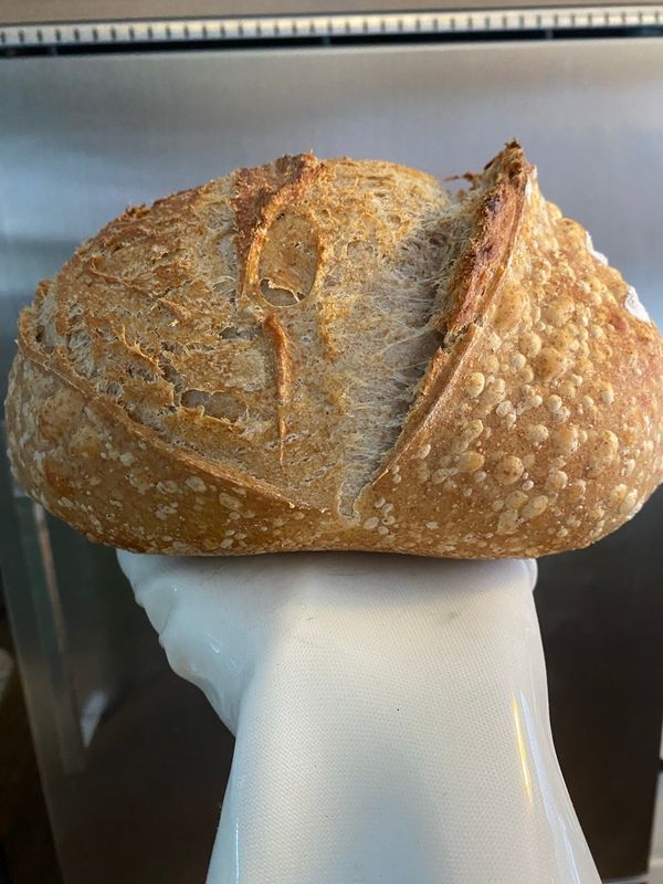 This sourdough is made with half stone ground hard red wheat flour grown and milled in Lodi, WI. Its still has a soft crumb, but is hearty with a more robust flavor due to the full flavor you get from the stone milled wheat.