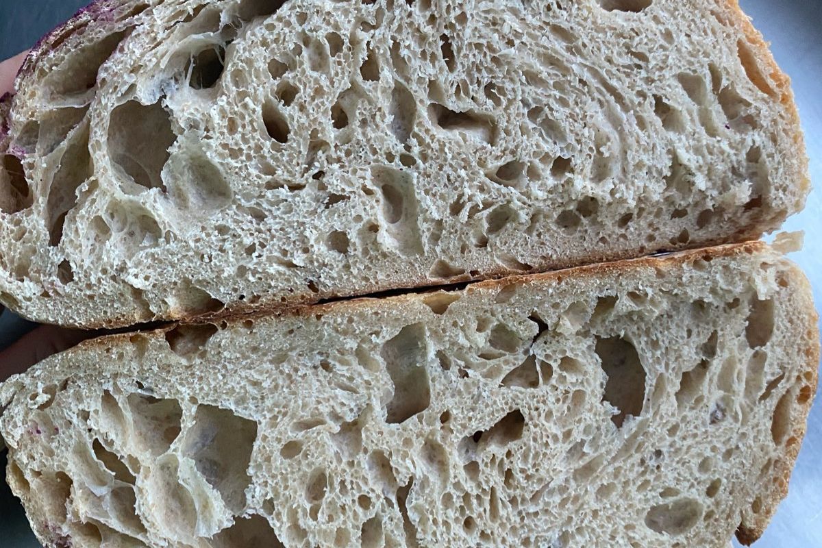 This bread is great for toasting and dipping in oil & herbs. A traditional loaf using just three ingredients. Flour, water and salt.