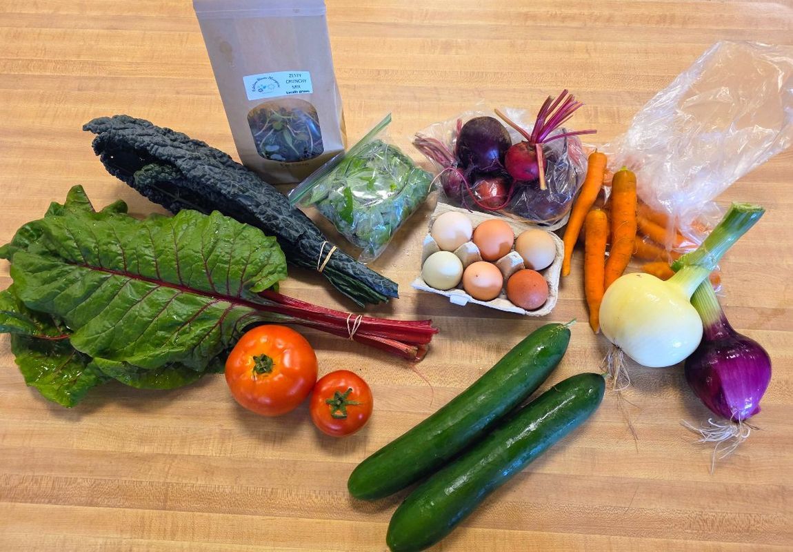 Enjoy a monthly box of seasonally fresh farm produce and products from a diverse group of local farmers. Boxes will be delivered to your home on the 2nd Thursday of the month, June -November (see dates below). Boxes are a collection of what is available each month and can include a variety of fresh veggies, herbs, fruit, eggs, honey, beans, etc. Please note that this subscription is intended to provide a delicious showcase of locally produced items that supports the local small farm community and is not a traditional CSA or intended to provide all of your monthly vegetable needs.