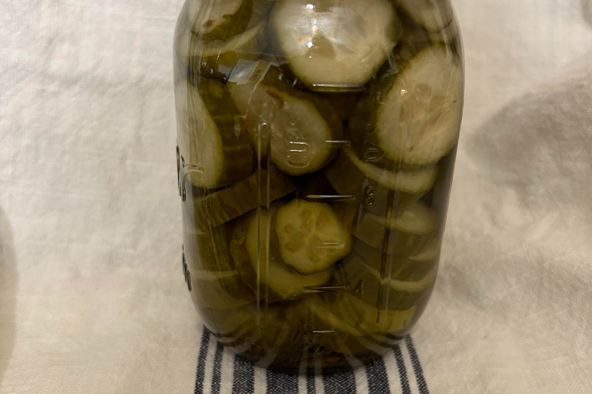 Ingredients- cucumbers, vinegar, water, salt, dill seed, and garlic