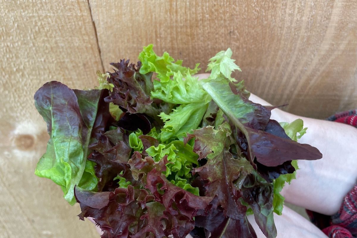 A crisp and colorful blend of cut red and green lettuces, great on its own or as a salad base.