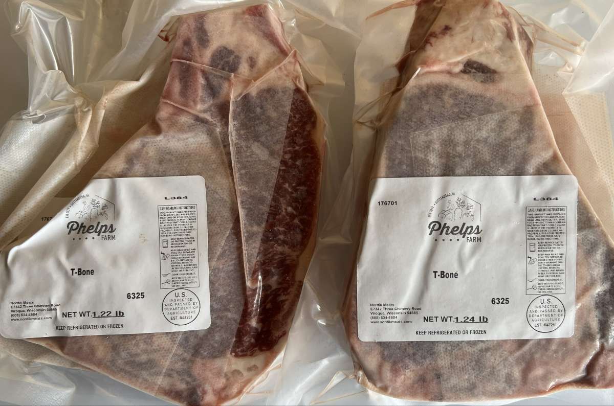 All beef is 21 day dry aged certified black angus. All beef products are frozen. T-Bone Steaks are approximately 1.2 lbs each.