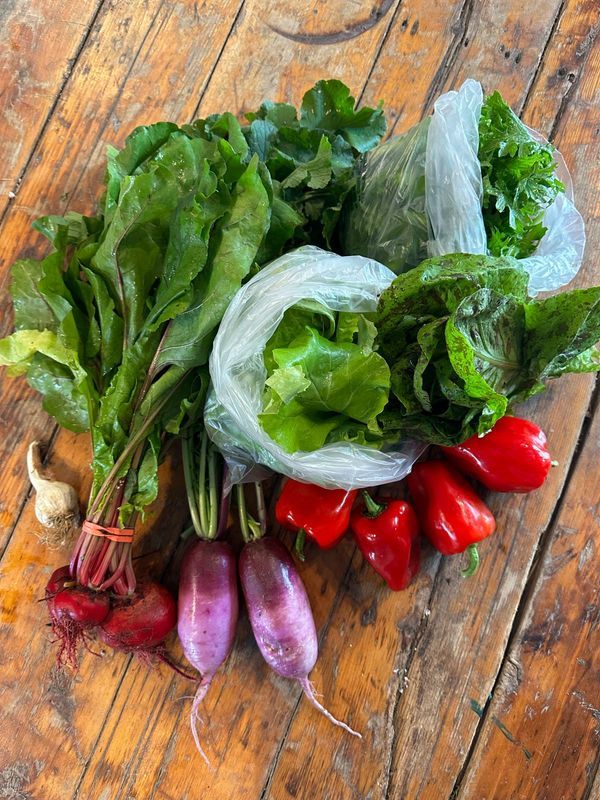 Our half CSA share is designed for a 1-2 person family and our full share is designed for 1-2 vegetarians or a family of 3-4 people. Pricing for a CSA Half Share is available in three tiers: Contributor Share $ 800 – For those with the means to pay the full cost of production and support fair wages for our farmers. Community Share $600 - An option designed to keep farm-fresh food affordable for local community members outside of New York City. Food Justice Share - Varied Price - For those who find the Community Share out of reach and wish to join through our food access program. Apply for this share here: https://form.jotform.com/252714921041146 A typical week will include 6-8 items, including larger quantities of greens, roots, and fruiting vegetables according to the season. The season is 23 weeks long and begins in June. We will announce the specific start date in mid to late May, depending on the season. CSA shareholders also have access to the pick-your-own field any time the farm is open, Monday - Saturday 9 AM to 6 PM. In the pick-you-own we grow a variety of veggies and flowers including cherry tomatoes, beans, and herbs. At Phillies Bridge Farm Project, our CSA is rooted in community, care, and respect. We ask all members to uphold these values in their interactions with farm staff and fellow members. When we treat one another with kindness and consideration, we create a safe and welcoming space for everyone. If behavior or language undermines this sense of respect or safety, we may request that you end your CSA membership.