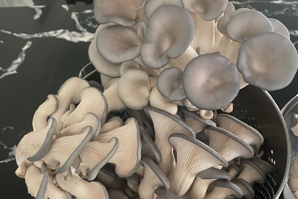 Freshly Harvested Blue Oyster Mushrooms