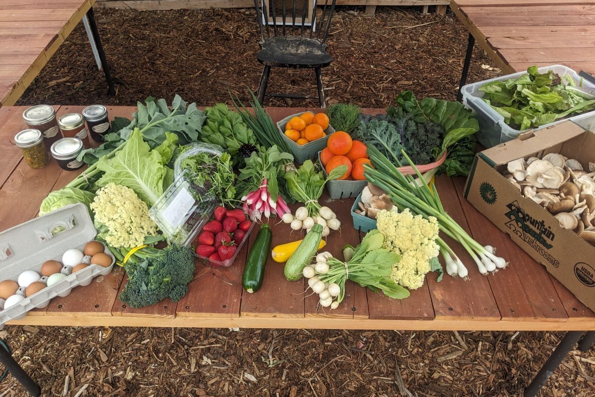 The Spring/Winter Season is full of fresh veggies like sugar snap peas, kale, broccolini, beets, carrots, radishes, chard, cilantro, parsley, lettuce, arugula, spicy greens mix, and more! You choose from the farm stand each weekend when you pick up. Grown with organic practices and love, we hope you enjoy every bite. Each Sunday we set up the farm stand with all of the veggies and fruits that have been freshly harvested. Eat item is labeled with the name of the veggie, and what is 1 item. For example, 1 bag of lettuce, 1 container of sugar snap peas, 1 bunch of carrots. You can take your time to look around and choose the veggies you want for the week. We also host extras, including sourdough bread, seasonal sauces, jams, eggs, and whatever else we can find that fits our values of local, organic, and delicious. Those items will be separate from your share, and you can check them out when you come get your veggies. We do our best to open up our farm to you, so you are always welcome to walk around, bring a friend, or ask questions. Our goal is to grow delicious food, but also to provide the chance to connect to where your food grows and build that connection. If that is something you find valuable, then you've found the right place! If you just want delicious veggies, then you've also found the right place! :P
