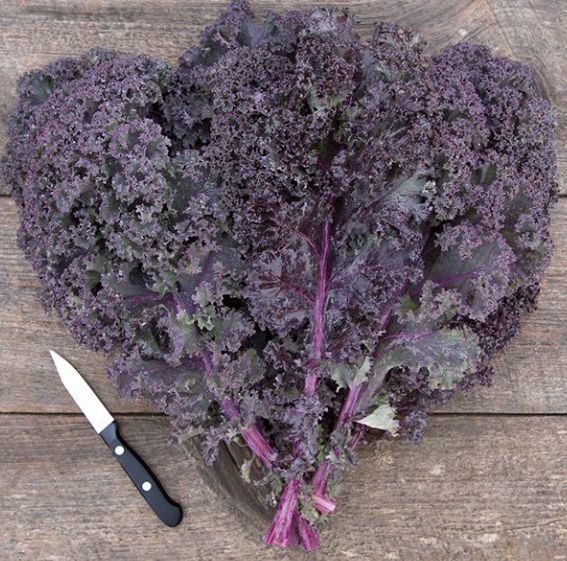 High Mowing says, "Densely curled purple leaves on tall, upright stalks for easy bunching... Vigorous plants produce reliable yields in both spring and fall. Vibrant color intensifies in cooler temperatures." Scarlet Kale seeds and photos from High Mowing Organic Seeds. All seedlings are grown using Certified Organic potting mix from Vermont Compost. Seeds are selected because they are heirloom, rare, organic and/or disease resistant varieties.