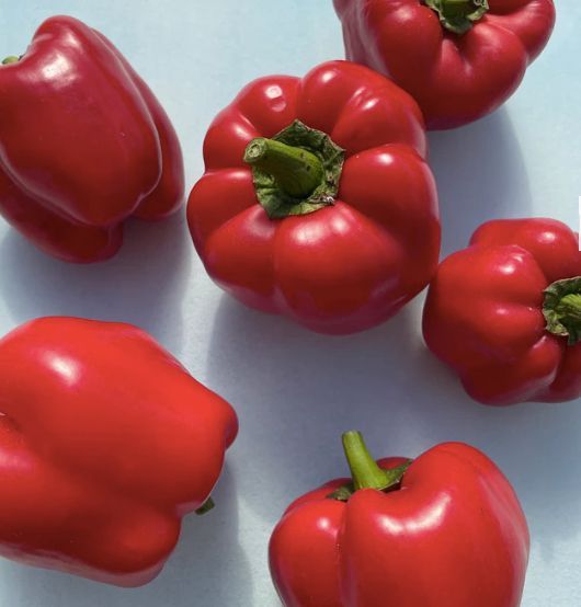 Sweet King of the North pepper seeds and photo from Hudson Valley Seed Co. Hudson Valley Seed says, "After finding this New York heirloom featured on the cover of a 1934 Harris’ Seeds Catalog, we were intrigued. Here is what they had to say about it. "Outstanding 1934 Introduction. Extremely Large, Early and Very Prolific. We put it mildly when we say that those who tested this new pepper last year were extremely pleased with it. The immense size, earliness and heavy yield make King of the North a variety that will give enormous yields of fine fruit even here in the North. The plants are medium size, branching and literally covered with fruit. The flesh is thick, mild and sweet.' Was this pepper still deserving of a crown after all these years? In order to find out, we trialed it on our home farm- only to discover some of the famed regional adaptations had faded. After careful selection work, we're proud to say that this pepper is once again King of the North(ern growing conditions) with fast-maturing fruits that ripen to royal red even in short seasons. Grow these sweet bells in your own garden to see why they reign supreme! All seedlings are grown using Certified Organic potting mix from Vermont Compost.
