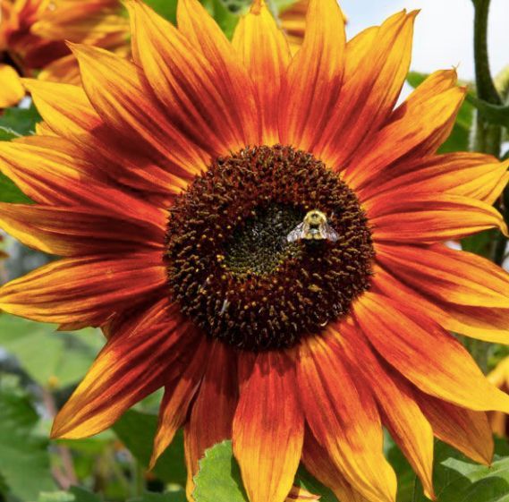 Seeds and photos from High Mowing Organic Seeds. High Mowing Says, "Flowers seem to glow in an array of gold, bronze, orange and scarlet tones with lots of bicolors. Well-branched tall plants with numerous flowers over a long season. Good bird food selection with lots of oil-rich seeds. " Plants can grow to 7' tall. All seedlings are grown using Certified Organic potting mix from Vermont Compost. Seeds are selected because they are heirloom, rare, organic and/or disease resistant varieties.