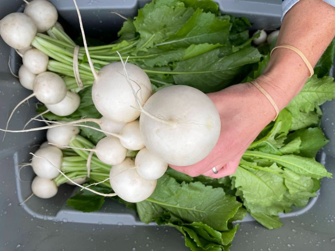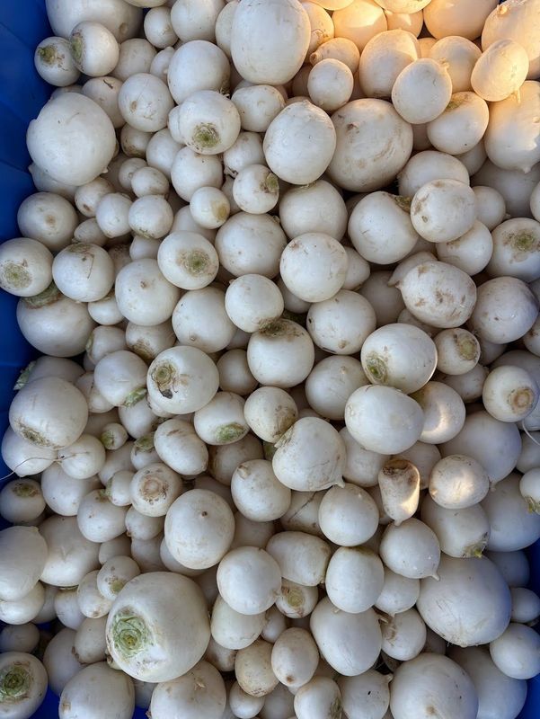 Loose hakurei turnips, sold by 5lb increments. Topped and trimmed.