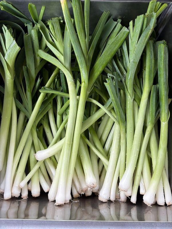 Loose leeks, cleaned and trimmed. Use the whole thing!