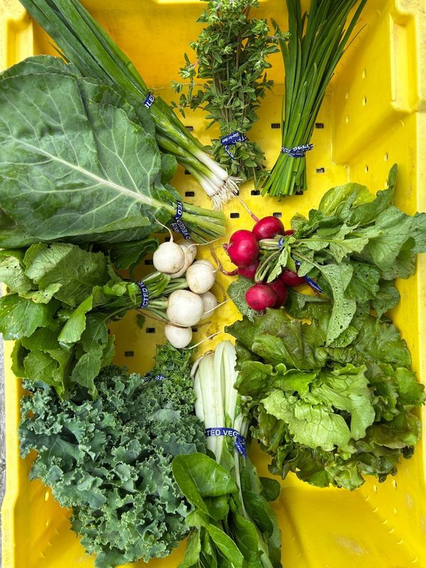 What's included in your membership? FULL BOX OF VEGETABLES: Receive a pre-packed box every other week for 11 total weeks. The types of vegetables in your box will rotate throughout the growing season so you get the freshest, highest quality items each box WEEKLY CSA MEMBER NEWSLETTER: Each newsletter will let you know what’s coming in that week’s box, as well as recipes + tips for what to do with your share and updates from the farm. Be the first to know about events, workshops, field updates, and more!