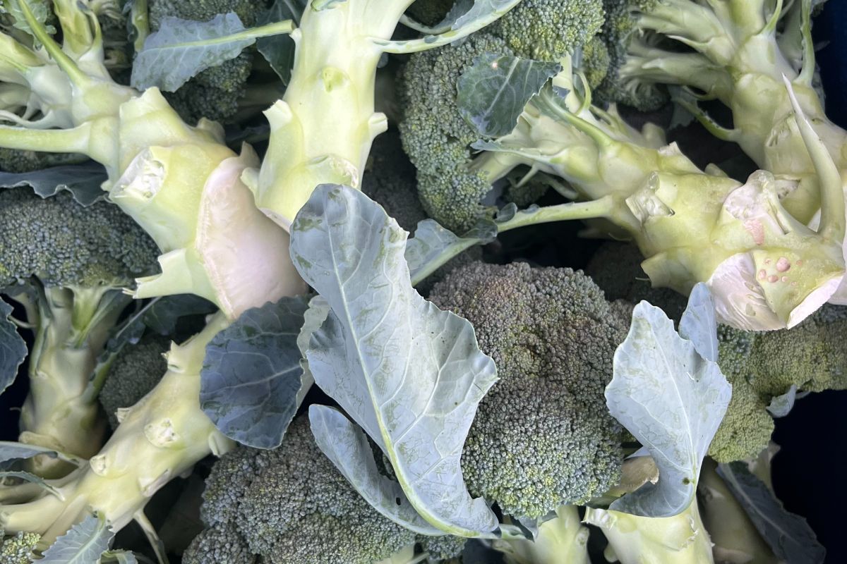Broccoli by the crown. Stem is tender, sweet, and delicious.