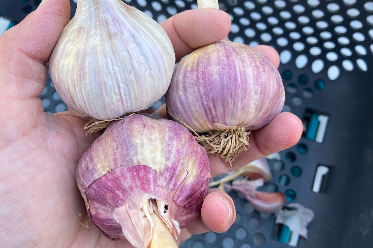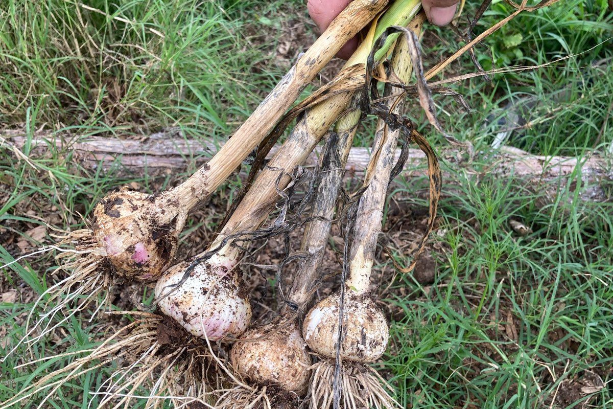 Garlic grown on our farm from organic seed. Grown without synthetic fertilizers or pesticides. Cured for several weeks, should store well in a cool dark place. Excellent flavor, fabulous roasted and smashed on toast, or minced and included in spaghetti, soup, omelets, and more.