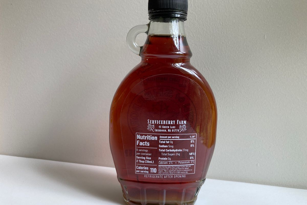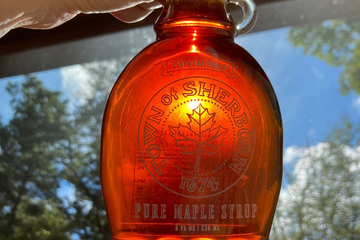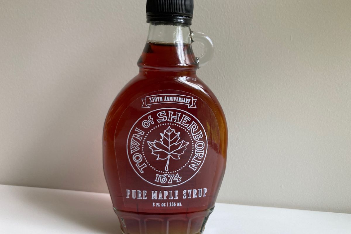 8 oz of 100% pure maple syrup from local Sherborn maple trees. This is the 350th anniversary vintage in a special glass bottle.