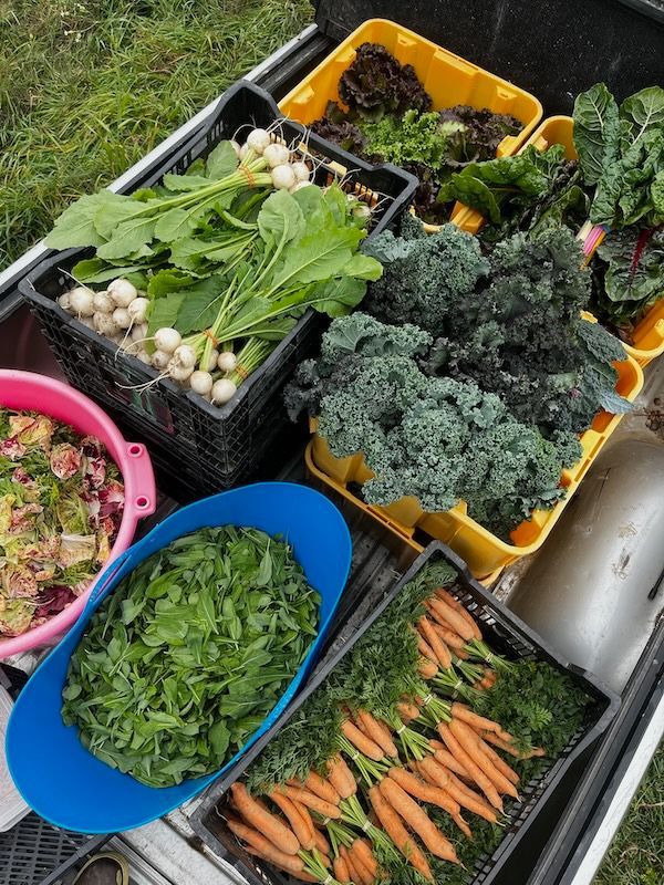 20 weeks of farm fresh, tasty and vibrant vegetables picked up on farm in a market style display. Choose from a variety of options to fill your weekly share basket. Our CSA is "free-choice-ish" which means we are offering a blend of traditional and modern CSA styles. Some items on the table will have quantity limits, some items will be take what you want, and some items will be required. The Full Share size is designed to feed a household of two veggie loving adults for a week, or to be the core produce purchase for a small family.