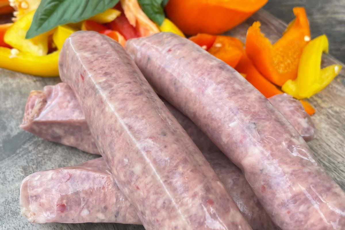 Heritage pork raised on pasture and fed non GMO feed. Seasoned with all natural ingredients.