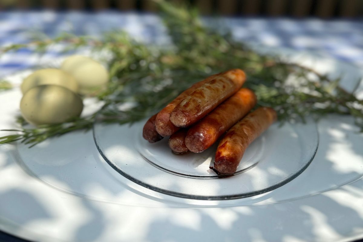 Heritage breed pork, raised on pasture and non-GMO feed. Links are seasoned with all natural ingredients.