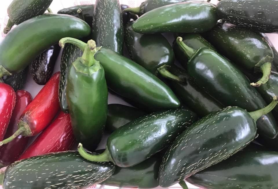 Fat, dark green jalapeños -- medium heat and great pepper flavor.