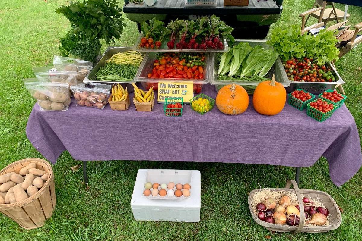 Established in 2020, we offer a wide variety of pesticide-free seasonal produce and fresh eggs laid from antibiotic-free pastured hens. We grow under the sun in open field. We also offer our free flowing spring water by donation and sell our own spring water bagged ice, firewood, and a variety of deet-free bug sprays. Our self service stand is open weekends June - October 2024. We are regular vendors at the Granville (Thu 2-5pm) and Whitehall (Tue 2-5pm) Farmers Markets. We accept SNAP/EBT, WIC & Senior FMNP Coupons, Fresh Connect Checks, Venmo, all major credit cards and are introducing CFC Produce Prescription Vouchers this summer. Follow us on Instagram/Facebook @SlatevilleFarm to get weekly updates on our offerings.