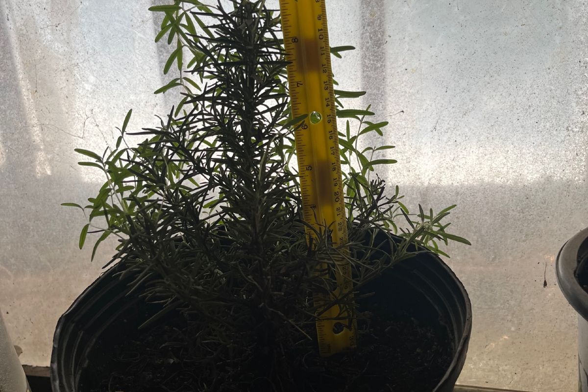 Indoor-overwintered one-year-old Tuscan Blue Rosemary plant in an eight-inch pot. Ready for planting into your new herb patch or for graduating to a larger pot for continued rapid growth. Also Baby Rosemary plants begun from rooted cuttings this winter. These practically double in size every month. All rosemary is frost sensitive, and a frost could kill it; overwintering indoors is a must. More info at our Perennials page at https://snakeroot.net/farm/rosemary-2/