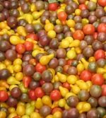 Cherry tomato seedlings, seven kinds. These are all large, heavy-yielding plants bearing clusters of cherry tomatoes. They produce best with trellising that keeps them off the ground. Plants get WAY bigger than standard tomato cages.