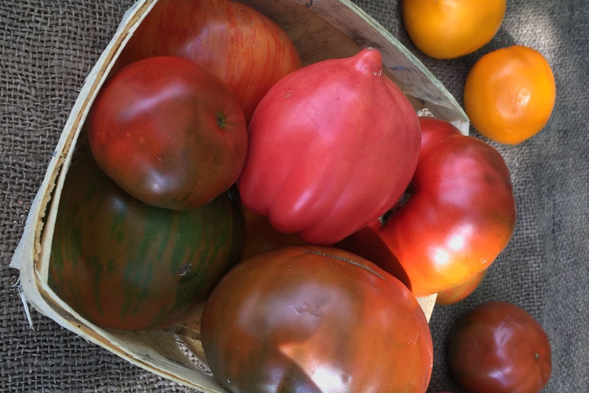 TOMATOES are warm-loving plants. Frost will kill them, but they will survive a week of chilly weather. Best to plant when nights no longer fall below 40°F. We don't have room here to describe each of these varieties, so for more information on our varieties and tomato planting tips visit https://snakeroot.net/farm/our-tomato-seedling-varieties/ Note that all of these varieties are also available as singles; larger plants in larger pots available during the month of June.