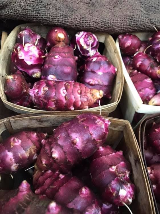 Two and ten pound bags of sunchokes harvested in the fall and stored for the winter in our walk-in cooler. Washed & sorted; no pee-wees and no jumbos. Nova Scotia Redskin variety, a native American vegetable. Eat raw in salads or cooked in stir fries. Add at the tail end of cooking, as you would snow peas, since they cook quickly. Or, add them at the beginning when making a soup where they will totally dissolve, thickening the soup, but without any starch.