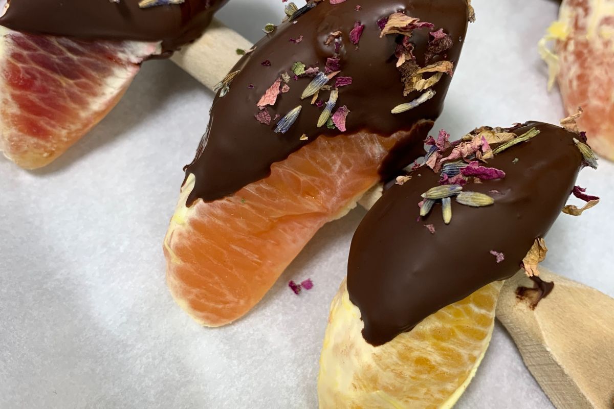 We hand-separate navel, Cara Cara & blood oranges into slices, dip them in vegan chocolate, and top with flowers. The resulting combo is at once refreshing and delectable! All our products are produced in a commercial kitchen at Mycoterra Farm in South Deerfield, MA and are gluten-free and nut-free. Delivery & Pick-up available: - February 13th: Delivery in/around Northampton (3pm - 6pm). Delivery fee: $5. - February 14th: South Deerfield @ Mycoterra Farm Store (10am - 6pm) - February 17th: Greenfield Farmers Market @ Greenfield Public Library (10am - 1pm) - February 18th: Easthampton Farmers Market @ Eastworks (10am - 2pm) Thanks for sharing the love with Song Sparrow Farm this February!