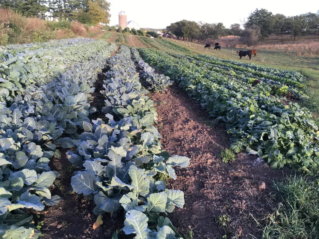 Greenhouse production of microgreens and transplants for on-farm use and for sale;, In-ground greenhouse production of vegetables, Mushrooms: oysters, shiitakes, Pasture, Vegetables: arugula, beets, broccoli, Brussel sprouts, cabbage, carrots, cauliflower, celeriac, celery, chicory, cucumbers, chard, dry beans, eggplant, fava beans, fennel, garlic, green beans, kale, kohlrabi, leeks, lettuce, mizuna, okra, onions, pac choy, parsnips, peas, peppers, popcorn, radishes, rutabaga, spinach, summer squash, sweet corn, sweet potatoes, tatsoi, tomatillos, tomatoes, turnips, winter squash; Herbs: basil, borage, catnip, cilantro, dill, lemon balm, lemongrass, mint, oregano, papalo, parsley, rosemary, sage, tarragon, thyme, tulsi; Cover crops: barley, buckwheat, oats, oil seed radish, peas, red clover, rye, sudangrass, sweet clover, vetch, white clover; Microgreens: brassicas, chard, peas, sunflowers, herbs; Fruit: melons, rhubarb; Flowers;, Woods, wild crop raspberries