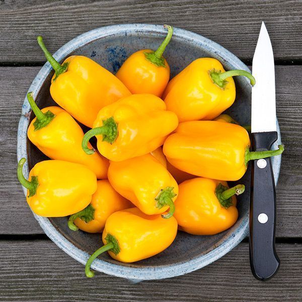 This snacking pepper has been a crowd favorite for the last couple years. It can be easily grown in containers, raised beds, or traditional beds in full sunlight. These prolific plants will give you slightly tart, crisp peppers. Also check out the red and orange varieties!