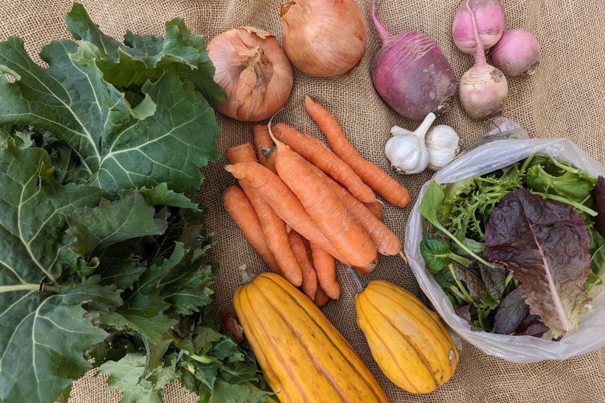 Our Fall Share will tun for 6 weeks, following the summer share, and ending the week before Thanksgiving. This share contains a few fresh crops + crops that keep for a long time so you can save unused veg for later! Expect the last few summer fruits and lots of storage vegetables including potatoes, squash, onions, garlic, carrots, beets, radishes and turnips as well as a couple greens (salad, arugula, spinach, kale, bok choy) in each box. Only one size is available as these crops keep well so you don't need to finish them within the week. Our produce is certified Real Organic!