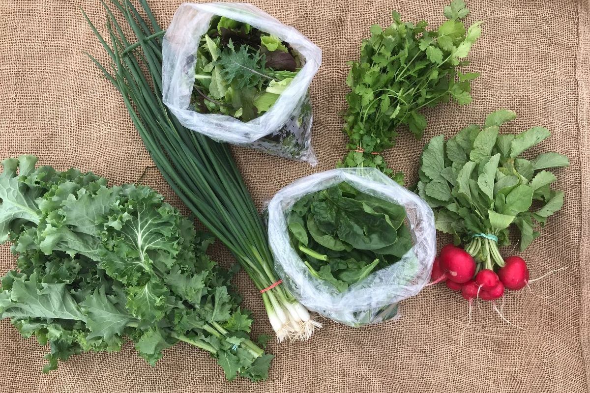 Our Spring share runs for 4 weeks from mid April-early May. You can expect lots of crisp spring greens (salad, arugula, spinach, kale, bok choy, tat soi) early roots (radishes, salad turnips), and some herbs (green garlic, cilantro) in this share. Be ready to eat your greens! Our produce is certified Real Organic.