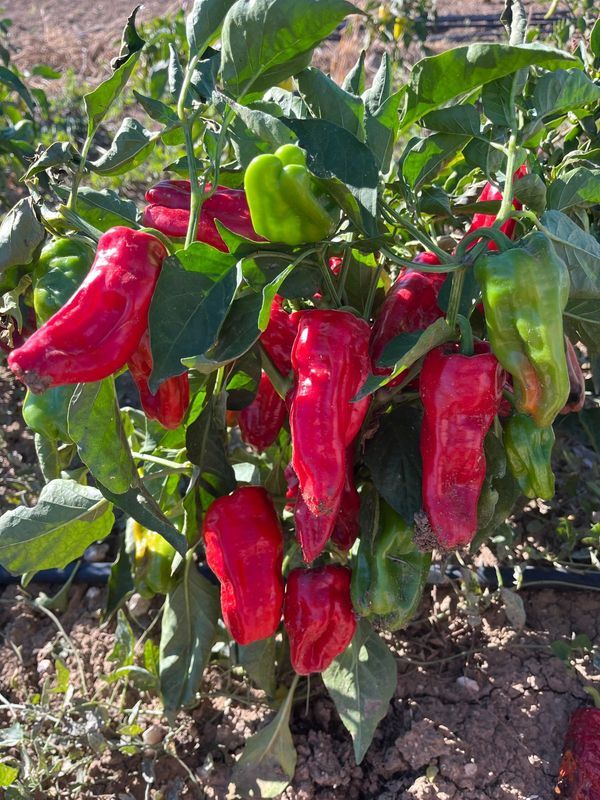 2. Aleppo peppers growing on the plant in the field, ready for harvest.