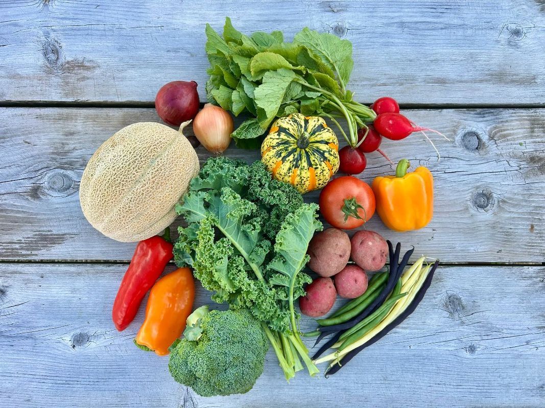 8 Weeks of fresh veggies September - October. You will pick up at the farm weekly beginning in September on Thursdays from 3-6pm. Weekly veggies offered will vary week to week depending on what is picked fresh by your farmers! On farm pick up gives you the take it or leave it option. A "take it or leave it" basket is available each week. If you don't want an offered veggie, "leave it" in the basket, if you see something in the basket you want "take it".