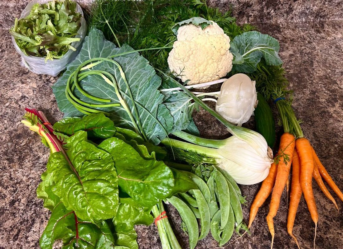 8 Weeks of fresh veggies May - June. You will pick up at the farm weekly beginning in May on Thursdays from 3-6pm. Weekly veggies offered will vary week to week depending on what is picked fresh by your farmers! On farm pick up gives you the take it or leave it option. A "take it or leave it" basket is available each week. If you don't want an offered veggie, "leave it" in the basket, if you see something in the basket you want "take it".