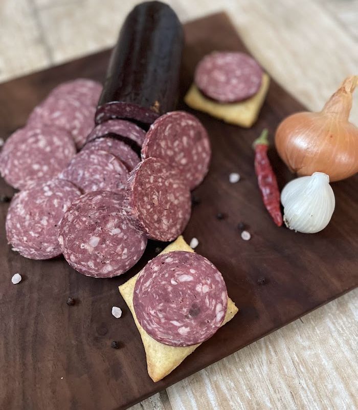 The Forbes Family Farm classic yak summer sausage. Made with our grass-fed, grass-finished yak. Seasoned with salt, pepper, garlic, red pepper, coriander, and onion. It is fully cooked, ready to slice and serve with your favorite cheese and crackers. Perfect for a high protein appetizer or snack on the go.