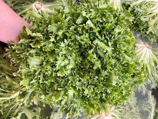 1 head of frisée AKA endive! This chicory has beautiful, creamy, blanched white leaves inside, perfect addition to salads – try it with poached eggs and chopped bacon on top, tossed in a red wine vinaigrette!